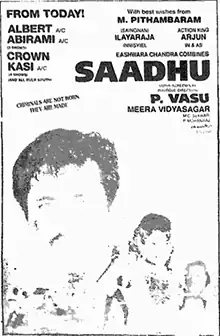 Saadhu (transl. Naive) is a 1994 Indian Tamil-language action film written and directed by P. Vasu, starring Arjun and Raveena Tandon, with Vijayakumar, Goundamani and Radha Ravi in supporting roles. The film marked the debut of Raveena Tandon in Tamil cinema.[1] It was released on 22 July 1994 and became a flop at the box office.[2][3]
