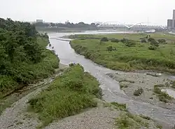 The Sagami River drains Lake Yamanaka, the largest and easternmost of the Fuji Five Lakes in Yamanashi Prefecture.[1] It loops northwest, then northeast through Yamanashi, before following a generally southerly course to exit into Sagami Bay of the Pacific Ocean between the cities of Hiratsuka and Chigasaki.[1] It is dammed at several locations along the way, forming a number of reservoir lakes, the largest of which are Lake Sagami and Lake Tsukui.