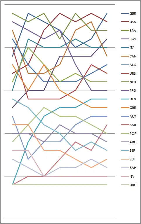 Graph showing the daily standings in the Star during the 1988 Summer Olympics