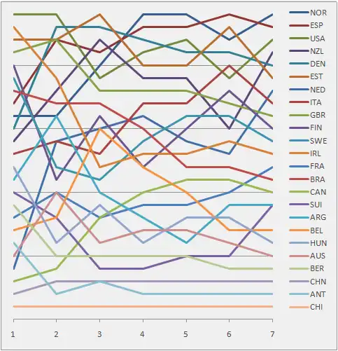 Graph showing the daily standings in the Europe during the 1992 Summer Olympics