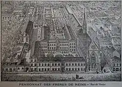 Saint-Joseph of Reims is a private state-supported Catholic primary and secondary school, located in Reims, in the Marne department of the Grand Est region of France. The co-educational school was founded by the Society of Jesus in 1874. The school is located between Capuchin, Venice, 'Équerre, and Moulins streets in Reims. It enrolls 1,250 students from kindergarten through baccalaureate and houses 340 boarding students.[1]