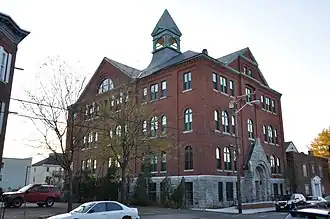 Saint Joseph's Roman Catholic College for Boys, also known as Saint Joseph's High School, is a historic school building at 760 Merrimack Street in Lowell, Massachusetts. The three-story brick Romanesque Revival building was built in 1892 to a design by Irish-American church architect Patrick W. Ford. The school was one of a number of Roman Catholic institutions built to serve Lowell's burgeoning French-American community, a significant portion of which had settled in "The Acre", as the neighborhood is known. In 1991 the school was merged with other local Catholic schools to form the Lowell Catholic High School. The diocese sold the building in 1997 to a local nonprofit, which converted it to residential use.[2]