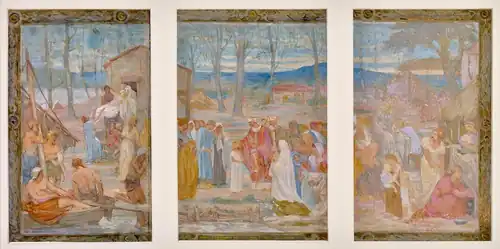 E. Charlton Fortune, Triptych after Puvis de Chavannes' La vie pastorale de sainte Geneviève, (1912), gouache on cardboard, SMCMoA collection.[10]