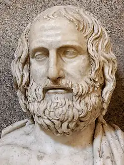 Salamis was probably first colonised by Aegina and later occupied by Megara, but became an Athenian possession in the time of Solon or Peisistratos, following the war between Athens and Megara around 600 BC.[7] According to Strabo, the ancient capital was at the south of the island; in classical times it was to the east, on the Kamatero Peninsula overlooking the Strait of Salamis; in modern times it is on the west.[8]
