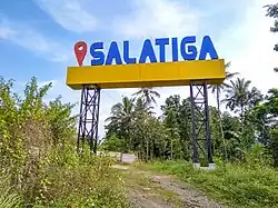 Salatiga (Javanese: ꦯꦭꦠꦶꦒ) is a city in Central Java province, Indonesia. It covers an area of 54.98 km2 (21.23 sq mi) and had a population of 192,322 at the 2020 Census;[3] the official estimate as at mid 2024 was 198,971 (comprising 98,571 males and 100,400 females).[2] Located between the cities of Semarang and Surakarta, and administratively an independent city enclaved within Semarang Regency, it sits at the foot of Mount Merbabu (3,142 m (10,308 ft)) and Mount Telomoyo, and has a relatively cool climate due to its elevated position. Salatiga is a part of the Semarang metropolitan area.
