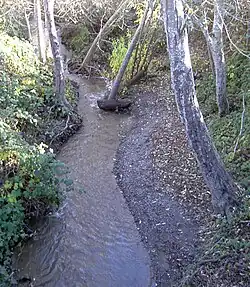 As of 2000, Salmon Creek and its five named tributaries all supported steelhead trout (Oncorhyncus mykiss). Salmon Creek also harbored California freshwater shrimp (Syncaris pacifica), and coho salmon (Oncorhyncus kisutch) were known to inhabit both Salmon Creek and Tannery Creek.[5] By 2006, however, the salmon run had ceased.[4] On July 2, 2010 the Salmon Creek Water Conservation Plan was released with important recommendations for restoring dry season instream flows, which have been exacerbated primarily by man-made water diversions. The Plan included such innovative solutions such as rooftop water harvesting and re-introduction of Golden Beaver.[6] The historic presence of beaver was evident in the first Russian-American Company voyage by Ivan Kuskov who sailed into Bodega Bay in 1809 on the Kodiak and returned to Novo Arkhangelsk, Alaska (Sitka), with beaver skins and over 2,000 sea otter pelts.[7] French naval captain Cyrille Laplace visited the Russian farms with the Aleksandr Rotchev, the last manager of Fort Ross, in 1839. After spending time at the Chernykh farm (near Graton probably on Purrington Creek) they rode to the Kirill Timofeevich Khlebnikov farm (near Bodega Corners) on Salmon Creek and wrote, "we had stopped a moment by a little river on the banks of which my traveling companion pointed out to me the former habitations of beaver, probably destroyed by the Indians in order to catch the rich prize that lay within."[8] In 2009 and 2010 the California Department of Fish and Game have re-introduced coho salmon into Salmon Creek.[9]
