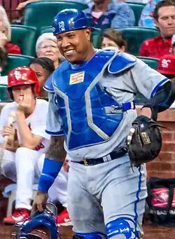 Salvador Johan Perez Diaz (born May 10, 1990), nicknamed "El Niño" and "Salvy",[2] is a Venezuelan-American[3] professional baseball catcher, designated hitter and first baseman for the Kansas City Royals of Major League Baseball (MLB). He is a nine-time MLB All-Star, five-time Gold Glove Award winner, five-time Silver Slugger Award winner, three-time All-MLB selection, Roberto Clemente Award winner, and received the World Series Most Valuable Player Award when the Royals won the 2015 World Series. Perez has played his entire career with the Royals, and was named the teams' captain in 2023. He represents the Venezuelan national team on the international level.