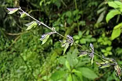 Salvia personata is an annual herb that is native to valleys and foothills in the Andes of Bolivia and northern Argentina. It grows in disturbed bushy habitat at 600 to 2,600 m (2,000 to 8,500 ft) elevation.