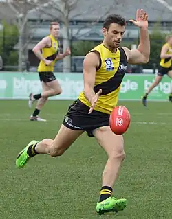 Sam Lloyd (born 3 March 1990) is a former Australian rules footballer. He played for the Western Bulldogs and the Richmond Football Club in the Australian Football League (AFL). Lloyd played as a midfielder and small forward and was renowned for his goal-sense and ability to win forward line one-on-one contests.[1] He was recruited from state-league football as a mature-age player in 2013. While senior listed at Richmond in 2017, he won the Norm Goss Memorial Medal as best on ground during the club's reserves grand final in the VFL.