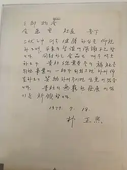 Samdo has been recognized personally by the leaders of Korea. The letter (on the left), written by President Park Chung Hee to Samdo Trading Corporation in July 1979 (3 months before he was assassinated), indicates recognition of Samdo's contribution to the national economy and monetary prize to be used for staff welfare and development.