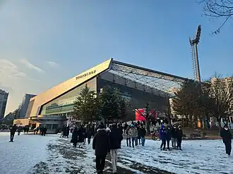 The complex includes a convention center adjacent to the indoor arena. The arena was considered ground-breaking for its time as the gymnasium was planned in such a way that the spectators' seats may be rearranged to suit various sports, thus being able to host fourteen different indoor sports in addition to concerts, festivals and other events.[5] Formerly the home ground of Korean Basketball League team Incheon Electroland Elephants, it was one of the league's earliest purpose-built basketball arenas during an era when the majority of KBL teams were "second-hand" tenants of gymnasiums originally built for other sports. The team was bought over by Korea Gas Corporation and moved to Daegu after the 2020–21 season ended due to the league policy that a team's corporate headquarters, home ground and training facilities must be located within the same vicinity.[6]