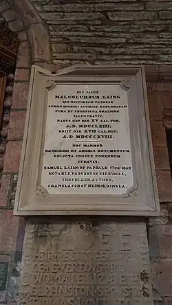 Epitaph for Samuel Laing in St Magnus Cathedral in Kirkwall