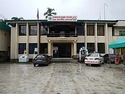 From top, left to right: Welcome Sign, Sacred Heart of Jesus Parish Church, Municipal Hall, Maria Amparo K. Dimayuga Park and Library