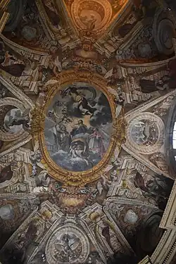 The ceiling was frescoed in 1674 by Giuseppe Avanzi with collaboration of the quadraturist Giuseppe Menegatti.[5]