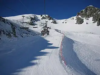The growth of the resort, which endangered its proper operation with an unforeseen saturation, led to the expansion of the Cebolledo parking lot and the installation of the Onofre-Quintanilla chairlift in 1984. With these improvements, San Isidro overtook Pajares and became the largest ski resort in the Cantabrian Mountains.[2] In 1985, in an attempt to further correct the saturation that afflicted the resort, the Riopinos chairlift was opened. Thanks to these facilities, San Isidro made a qualitative leap that increased its services, slopes, and capacity. At the end of the decade, the resort exceeded 100,000 visitors per year for the first time in its history.[2]