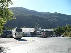 The city has a bus terminal with both long- and medium-distance services, connecting it with a large variety of points in Argentina as well as with neighboring Chile.[27] The town is served by the Aviador Carlos Campos Airport, which is 22 km (14 mi) away from the centre and is considered the main airport in southern Neuquén province.[29]