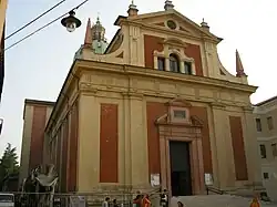 The present church was built in the 17th century under designs of various architects initially led by Giulio della Torre from Bologna, while the cupola (1625–1629) was designed by Paolo Messori from Reggio. The church layout follows the rules given by the Council of Trent and is a remarkable example of an architecture still true to its original design. Only the façade was built in the 18th century. The interior has paintings by Alessandro Tiarini, Paolo Emilio Besenzi, Pietro Desani and Malossi.[1]