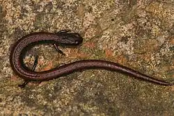 The San Simeon slender salamander is endemic to California, in south-western Monterey and northern San Luis Obispo Counties in the western United States.[1]