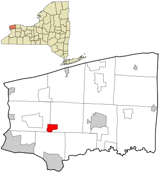 Sanborn is a hamlet (and census-designated place, population: 1,645 in 2010 census) in the Towns of Cambria and Lewiston in Niagara County, New York, United States, on the southern side of the intersection of New York State Route 429 and New York State Route 31.[1] Originally called South Pekin after the formerly thriving hamlet of Pekin to the north, Sanborn was renamed in 1866 after Ebenezer Sanborn.[2] The ZIP code for Sanborn is 14132.