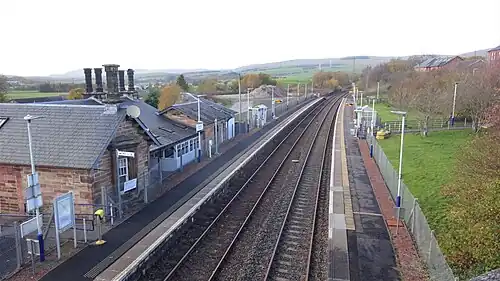Sanquhar railway station is a railway station in the village of Sanquhar, Dumfries and Galloway, Scotland. The station is owned by Network Rail and managed by ScotRail and is on the Glasgow South Western Line. The old station buildings are in use as a holiday home. The station was re-opened (in 1994) together with Gretna Green, Auchinleck, New Cumnock, Kilmaurs and Dunlop after initially falling victim to the Beeching Axe in December 1965. Kirkconnel remained open but has also seen significant investment in its infrastructure.
