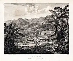 Sans Souci. Castle of King Christopher of Haiti, lithograph by Gottfried Küstner (1800–1864) from a work by Carl Ritter, published in 1836.