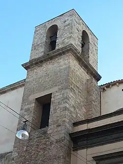 At the corner of the church adjoining Corso 6 Aprile, there stands the bell tower, without a pinnacle.[1]