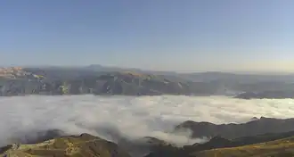Morning fog in the Santa Clara River Valley, viewed from Torrey Peak near Piru, California.