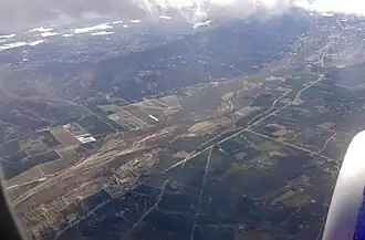 Aerial view of the Santa Clara River Valley, with CA 126 running along the northern banks of the Santa Clara River