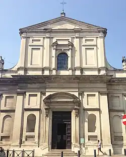 The original church at the site was founded in 1080, outside the walls of the village under the patronage of Pope Gregory VII. With the expansion of the town, the church was rebuilt in 1596 using designs of Pellegrino Tibaldi. One of the holy relics of the church is putatively a foot print of Christ, though made of Carrara marble, and, according to the tradition, dating back to the period of the Crusades.