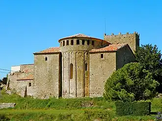 The monastery dates to c. 940 when a group of monks settled in the area.[1] From 977, it came under the protection of the Counts of Cerdanya and Besalú while Froila became the abbot (977-993). Housing 13 monks, it later received donations from Oliba Cabreta (whose sarcophagus lies here) and his brother Miró. A new church built in 1077 was consecrated in 1126. In the fourteenth century, while only six monks were living there, the bell tower was destroyed but was rebuilt under the abbot Berenguer de Lluçà in 1373. The monastery later came under the authority of the Bishop of Urgell.