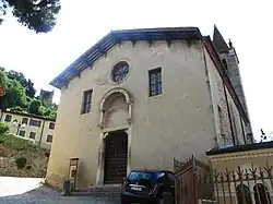 The 15th-century building has a simple and sober layout. It was built during an era of transition between Gothic and the Renaissance styles. The shades of different colors, green, ocher and white, alternate and create a particular architectural harmony. The single nave, is illuminated with tall gothic windows. The altar, made in marble, flanked by two little baroque doors. Three other altars are placed in the chapels located on the left wall of the church.
