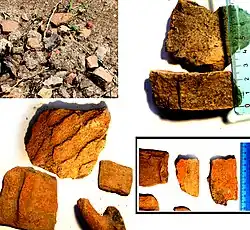 The area surrounding Santa Paolina was frequented by prehistoric men in the Neolithic age. Archaeological findings reveal the presence of a civilization of the Irpinian people in the valley at the foot of Mount San Felice in the 9th century BC.[3][4][5] Living in the area around the streams Orsi, Sant'Egidio, Marotta, and Picoli, this settlement of Irpinian people produced decorated pottery and various tools.[6] The discovery of fragments of an old and large furnace shows that this region was the source of elaborate craftsmanship as early as the late Neolithic age.[7] The products manufactured in these factories before the Roman empire were likely traded or sold along the ancient trade routes linking this site to the ancient "civitates" typical of the ancient civilizations of Hirpines and Japyges situated behind the hills, along the valleys and near the rivers inland, at the roots of Apennines mountains and located in the mid-south of Italy.