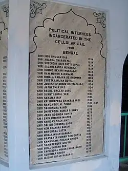 - ^ "আন্দামান সেলুলার জেলের ৩৯০ জন বাঙালি স্বাধীনতা সংগ্রামীর তালিকা".