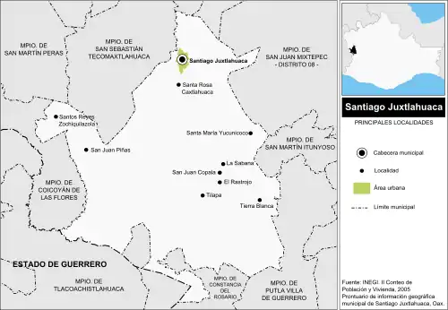 1. ^ "SANTIAGO Juxtlahuaca". Enciclopedia de los Municipios de México: ESTADO DE OAXACA. Archived from the original on 16 June 2011. Retrieved 6 June 2010.
