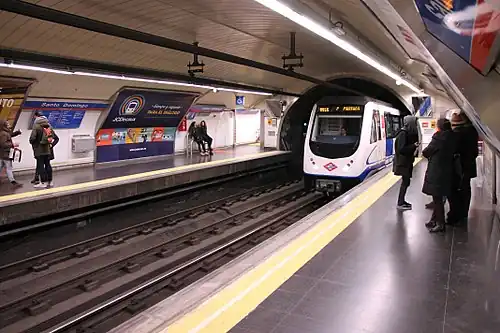 Santo Domingo [ˈsanto ðoˈmiŋɡo] is a station on Line 2 of the Madrid Metro, named for the Plaza de Santo Domingo ("Saint Dominic Place"). It is located in fare Zone A.[1]