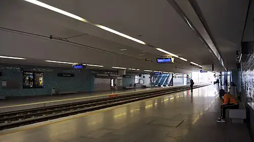 Santo Ovídio is a light rail station on line D of the Porto Metro system in Vila Nova de Gaia, Portugal. The station is situated underground, below the junction between Av. da República, R. de Soares dos Reis, R. Conceição Fernandes and R. António Rodrigues Rocha. To the north the line runs in the centre of Av. da República, whist to the south it climbs onto an elevated structure.[1][2]