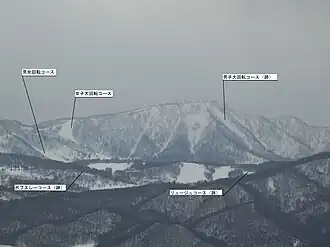The first skiing courses were constructed between 1968 and the end of 1970. The slalom courses had an elevation difference of 300 metres (980 ft) while the elevation differences for the men's and women's giant slalom were 400 and 300 metres (1,310 and 980 ft), respectively. Requiring additional vertical drop, the downhill events were run on Mount Eniwa.