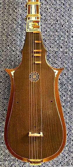 The Sato (Uzbek: Сато) is a bowed tanbur, or long-necked lute, played by performers of Central Asian classical and folk music, mainly in Uzbekistan.[1] It has five strings. When plucked, the top string is pressed to the neck to produce a melody; the other four strings are drone strings.[1] Frets on the neck are made of tied string.[2] The soundboard has holes drilled in it for sound holes.[2] It is made from mulberry wood.[2]