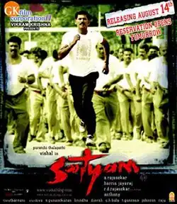 Satyam (transl. Truth)[a] is a 2008 Indian action film written and directed by A. Rajasekhar in his debut. The film was simultaneously shot in Tamil and Telugu titled as Salute, with a slightly different supporting cast. The film stars Vishal, Upendra and Nayanthara. It was produced by Vikram Krishna, Vishal's brother. The score and soundtrack were composed by Harris Jayaraj.