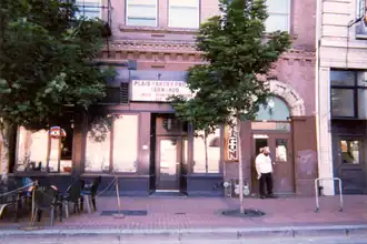 Satyricon was founded by George Touhouliotis, a former taxi driver who acquired Marlena's Tavern in 1983.[7] Upon taking ownership, Touhouliotis re-conceived the location as a nightclub that would offer live music.[7] He named the club Satyricon after the 1969 Federico Fellini film of the same name.[4] At the time, the surrounding Old Town Chinatown neighborhood had a seedy and dangerous reputation.[8] The block was characterized as Portland's skid row,[9] "a real shithole of a neighborhood" with "open drug dealing, fights, knives, [and] guns."[10] Local historian SP Clarke recalled that "A mere attempt to walk the sidewalks ... required a helmet and full body armor."[10]