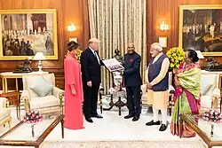 Kovind assumed the role of First Lady of India on 25 July 2017 after nearly 2 years of vacancy since the former first lady died in office. India's first spouses act as the official hosts of Rashtrapati Bhavan.[3]