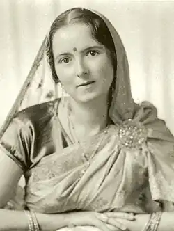 Formally adhering to Hinduism, she took the name Savitri Devi (Hindi: सावित्री देवी), in honor of the Indian sun god Savitri.[9] In 1937 she volunteered to work at the Hindu Mission,[10] and wrote A Warning to the Hindus in order to offer her support for Hindu nationalism and independence, and rally resistance to the spread of Christianity and Islam in India.[11] During the 1930s, she distributed pro-Axis propaganda and engaged in intelligence gathering on the British in India.[1] She claimed that, during World War II, she enabled Subhas Chandra Bose (the leader of the Axis-affiliated Indian National Army) to contact representatives of the Empire of Japan.[12]