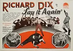 Say It Again is a 1926 American silent romantic comedy film produced by Famous Players–Lasky and released through Paramount Pictures. It starred Richard Dix and was directed by Gregory La Cava.[1][2]
