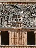 Palace façade on the second level, depicting Ah-Muzen-Cab on the doorway -