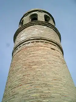 Minaret to the Kydyr mosque, 10th century. Roughly 45 feet (15 meters) tall.