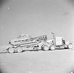 Though not designed for military use, the British War Office purchased a single petrol engined example in 1932. Equipped as a tank transporter with a permanently coupled 18t semi-trailer, it was assigned to a training unit but did not initially catch on.[1] Additional transporters were not purchased until 1937.