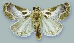 - ^ Goldstein, Paul Z.; Metz, Mark A.; Solis, M. Alma (2013). "Phylogenetic systematics of Schacontia Dyar with descriptions of eight new species (Lepidoptera, Crambidae)". ZooKeys (291): 27–81. Bibcode:2013ZooK..291...27G. doi:10.3897/zookeys.291.3744. PMC 3677288. PMID 23794861.