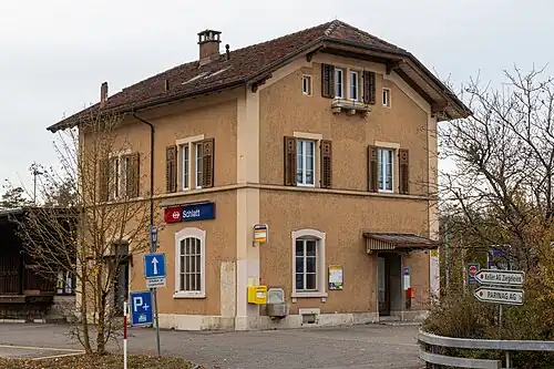 Schlatt railway station (German: Bahnhof Schlatt) is a railway station in Schlatt, in the Swiss canton of Thurgau. It is an intermediate stop on the Lake line and is served as a request stop by local trains only.