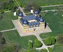 Marquard Sebastian Schenk von Stauffenberg, Prince-bishop of Bamberg, enjoyed the rural area around Memmelsdorf. He thus asked Antonio Petrini to replace a local estate from the late 15th century with an early Baroque palace. This was built between 1684 and 1695.[1]: 228