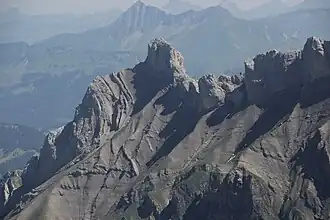 1. ^ Retrieved from the Swisstopo topographic maps. The key col is located south of the summit at 2,506 metres.